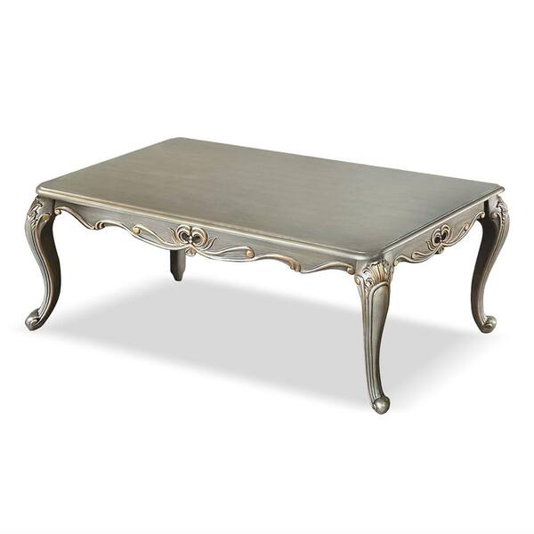 Hencet 2-Piece 48 in. Champagne Rectangle Wood Coffee Table Set with Ornate Details, Cabriole Legs, Gold Highlights