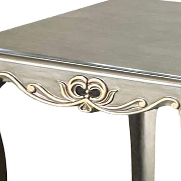 Hencet 27.5 in. Champagne Rectangle Wood End Table with Cabriole Legs and Gold Highlights