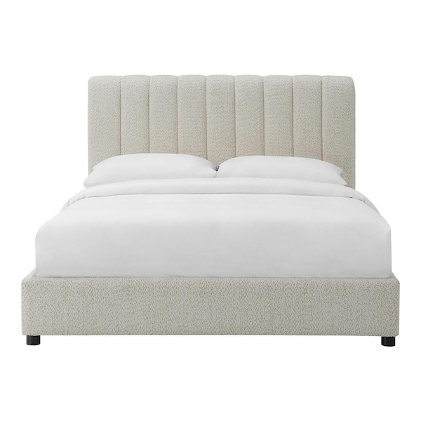 Hurnick White Wood Frame King Platform Bed with Upholstered Headboard