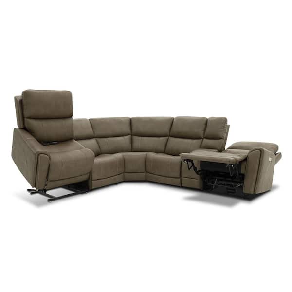 Ilana 127 in. Track Arm Polyester Fabric L-Shaped Power Sectional Sofa in Brown with Lift Chair and Hidden Cupholders
