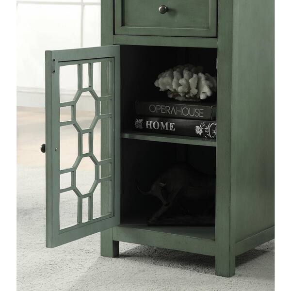 Ivanhoe 17 in. Antique Teal Rectangle Wood Side Table with 1-Drawer