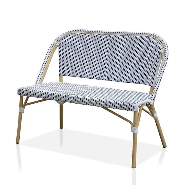 Janele Natural Tone with Navy Wicker Seat Outdoor Loveseat