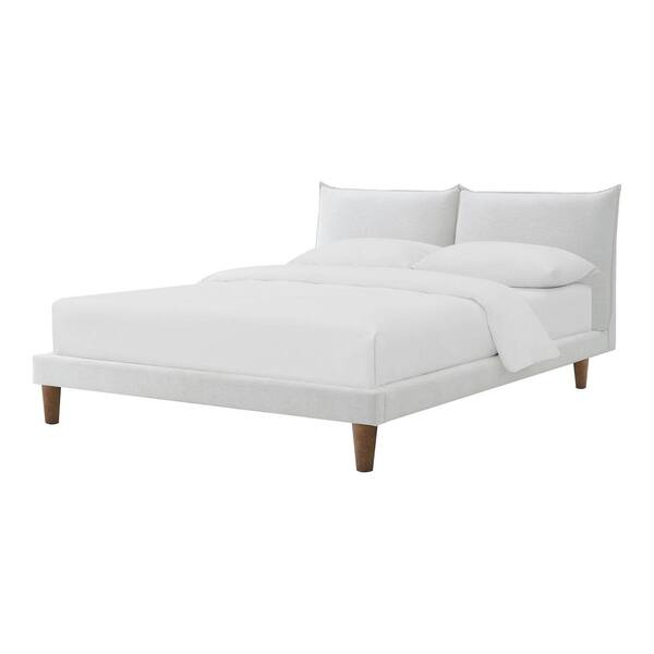 Jaron Gray Wood Frame King Platform Bed with Pillow Top Headboard and Flange Trim