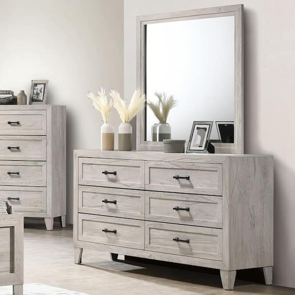 Jasper Washed White 6-Drawer 58 in. Dresser with Mirror