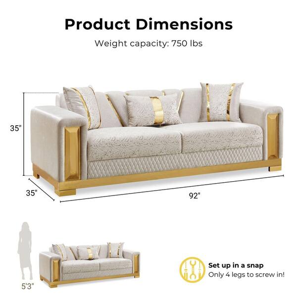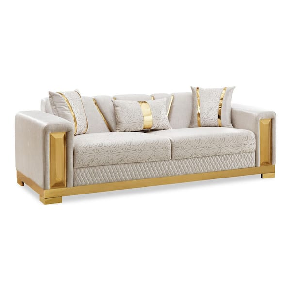 Jayda 92 in. Soft Curved Square Arms Polyester Upholstered Fabric Rectangular Sofa in Beige and Gold with Tight Back