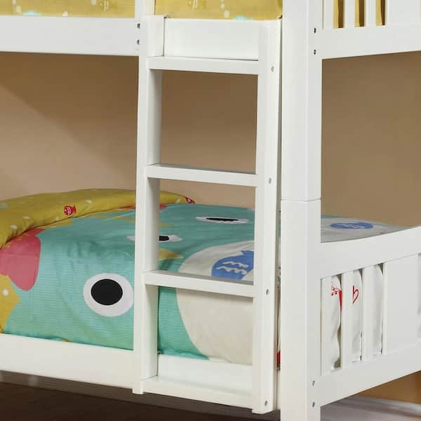 Jelle White Twin over Twin Wood Bunk Bed with Attached Ladder