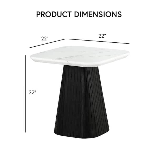 Jones 22 in. Black Square Faux Marble Top End Table with Soft Curved Edges and Reeded Drum Base