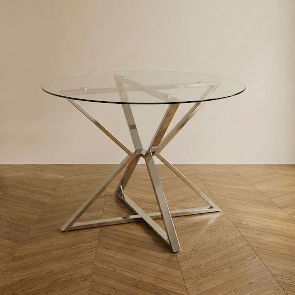 Kapela 41.5 in. Chrome and Glass Round Dining Table