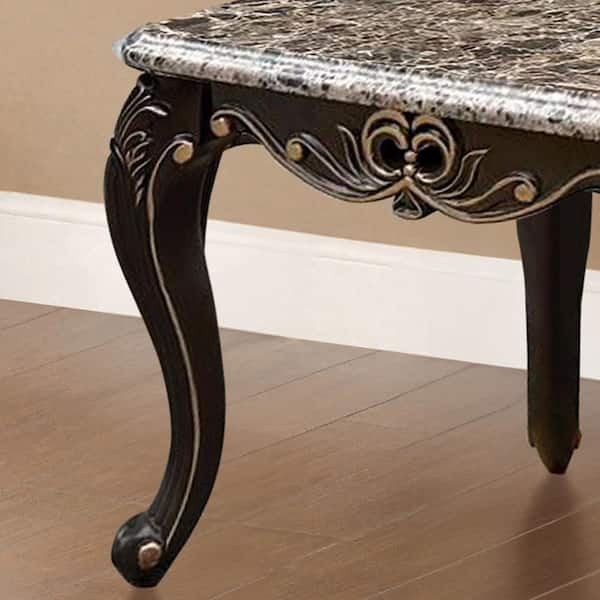 Katie 27.5 in. Dark Walnut Square Marble End Table with Cabriole Legs and Gold Highlights
