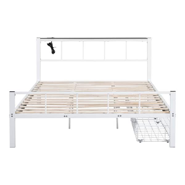 Lancest White Metal Frame Queen Platform Bed with Underbed Storage