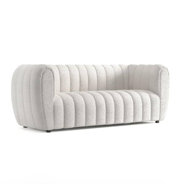 Laura 82.5 in Round Arm Boucle Polyester Fabric Glam Rectangle Pocket Coil Cushion Sofa in White