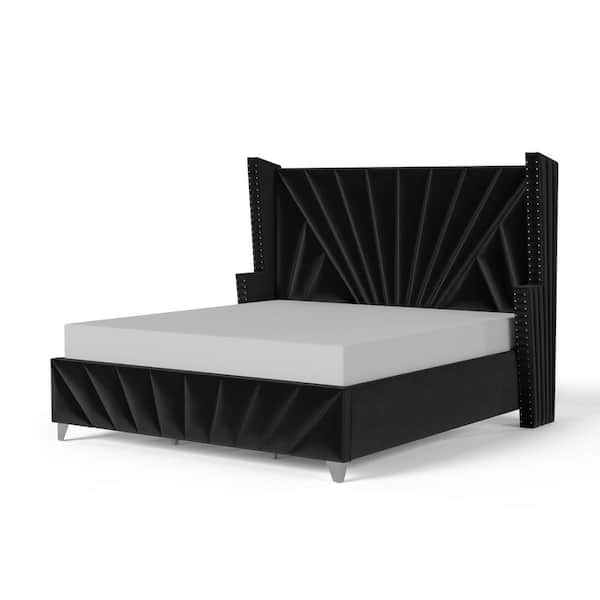Leventina 86.5 in. W Black King Wood Frame Platform Bed