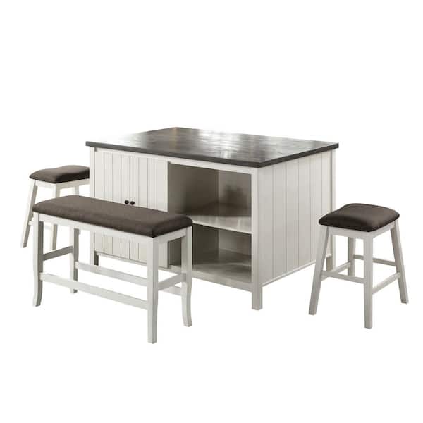 Lindred 4-Piece Rectangle Off-White and Dark Gray Wood Top Counter Height Table Set (Seats 4)