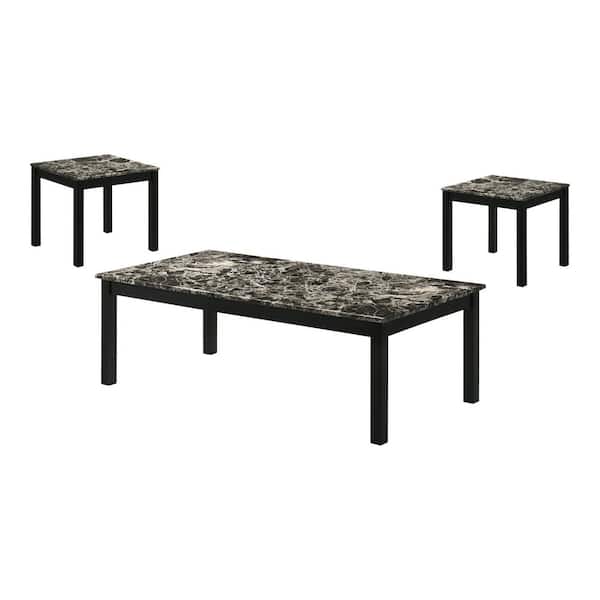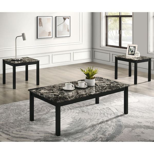 Linel 3-Piece 47.5 in. Black and White Rectangle Faux Marble Top Coffee Table Set