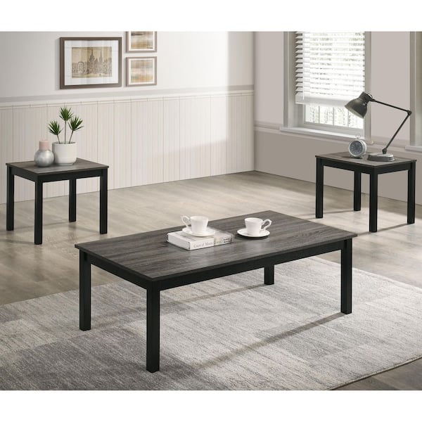 Linel 3-Piece 47.5 in. Gray Rectangle Wood Top Coffee Table Set