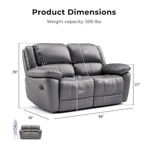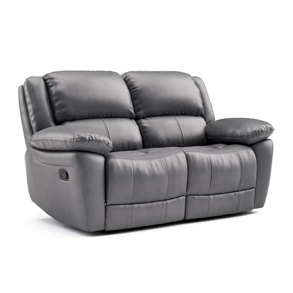 Loure 60 in. Dark Gray Solid Leather Match 2-Seater Loveseat with Pillow Top Arms and Adjustable Headrest