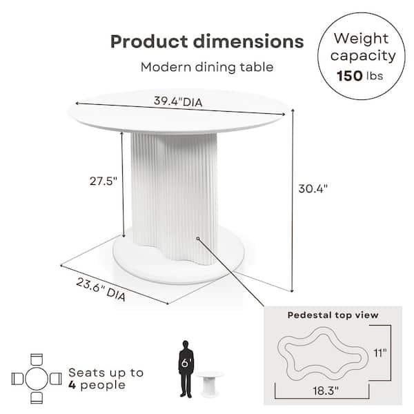 Lusine Modern White Engineered Wood Round 39.4 in. Pedestal Dining Table Seats 4