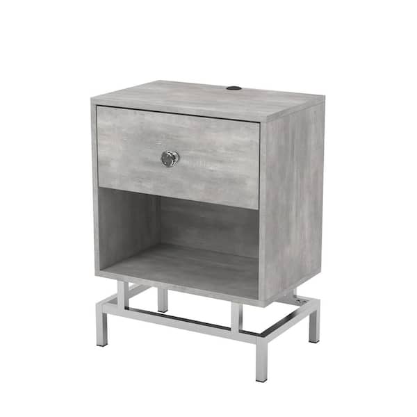 Milo 24 in. H Light Gray Side Table with USB Plug