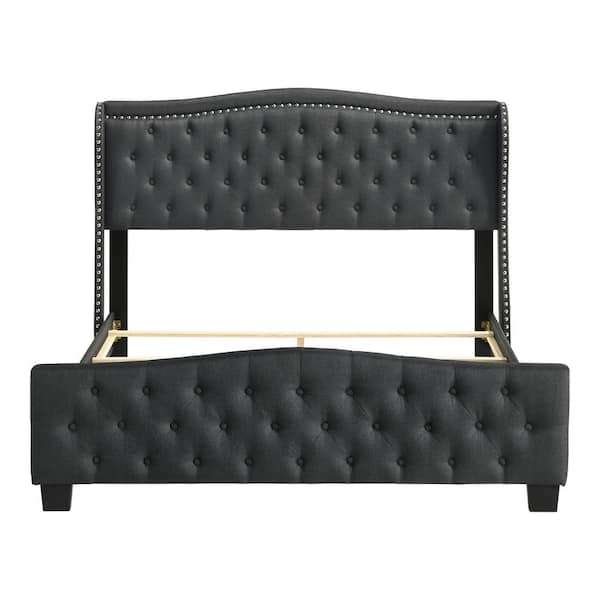 Miraga Dark Gray King Panel Bed with Tufted Upholstery