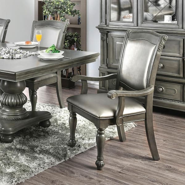 Natalia Gray Cushioned Dining Arm Chair (set of 2)