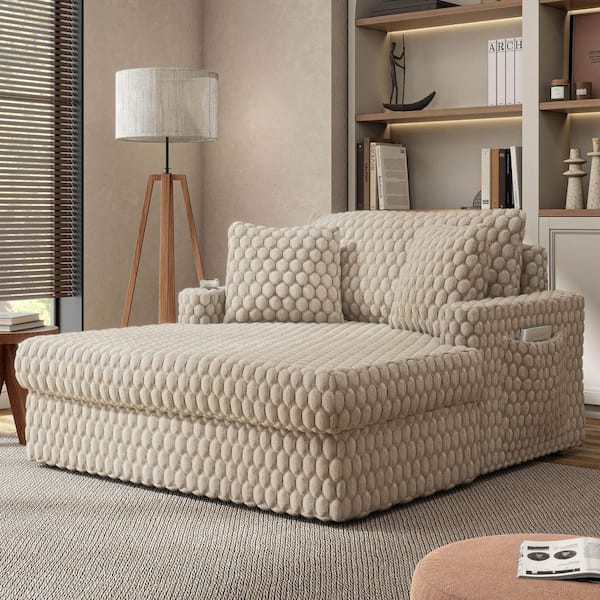Nattel Taupe Chenille Cushion Back and 2 Track Arms Chaise Lounge with Cup Holders