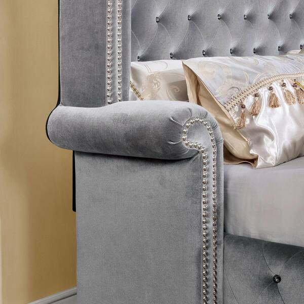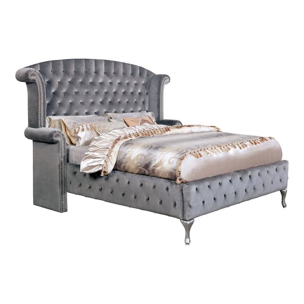 Nealyn Gray Upholstered Wood Frame Queen Platform Bed with Wingback