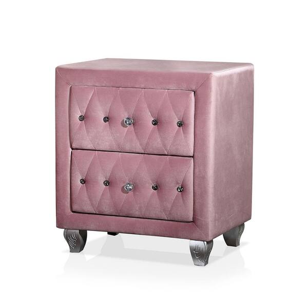 Nesika 3-Piece Glam Pink Velvet Twin Bedroom Set with 2-Nightstands