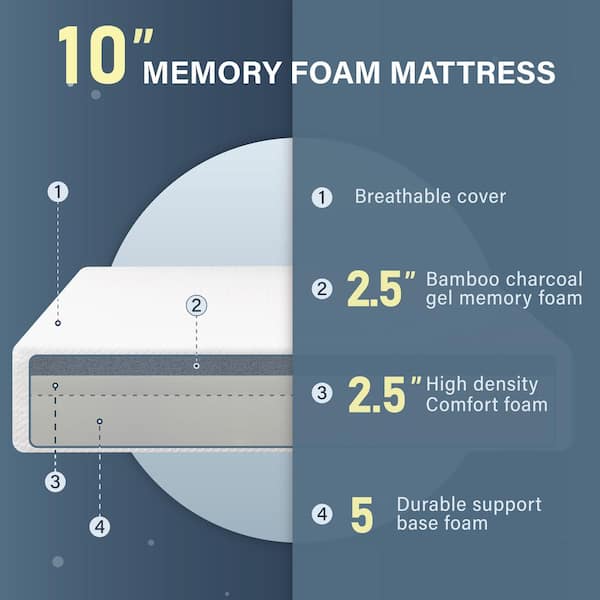 Nixy King Medium Memory Foam 10 in. Bed-in-a-Box CertiPUR-US Bamboo Charcoal Mattress