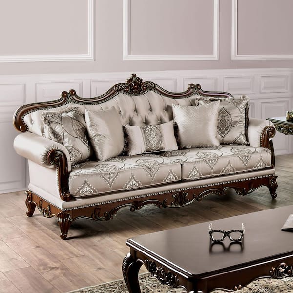 Noel 90.25 in. Rolled Arm Fabric Rectangle Sofa in. Beige
