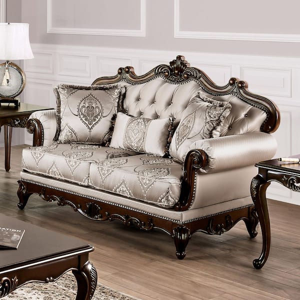 Noel Beige 48.5 in. Paisley Fabric 2-Seater With Rolled Arms
