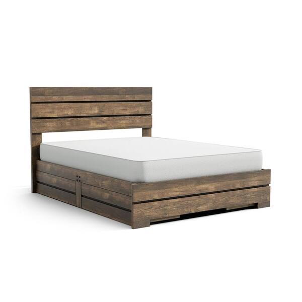 • Rustic light walnut finish with panel-style head and footboard
