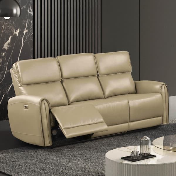 Oremus 80.5 in. Flared Arms Faux Leather Reclining Sofa in Beige