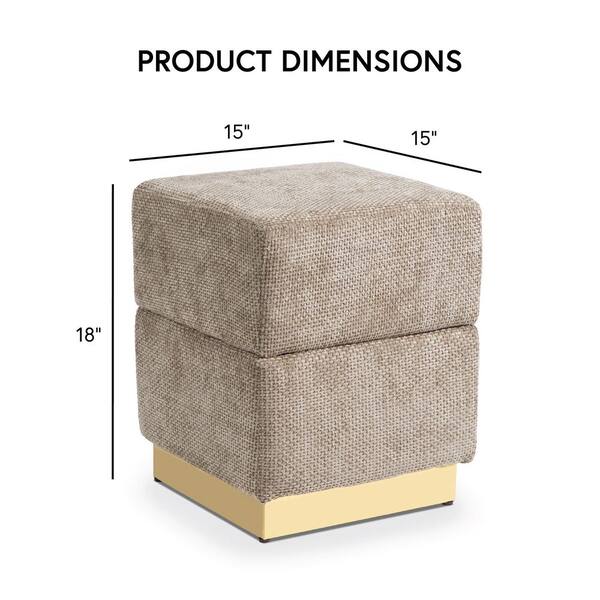 Ponzu Modern Gray Chenille Fabric Square Accent Ottoman Small (Under 22 in.) with Storage