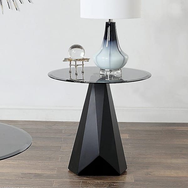 Prospector 24 in. Black and Gray Round Glass End Table