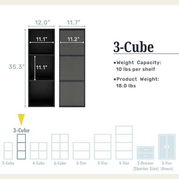 Quincy 35.27 in. Tall Stackable Greige Engineered Wood 3-Shelf Modern Modular Slim Bookcase