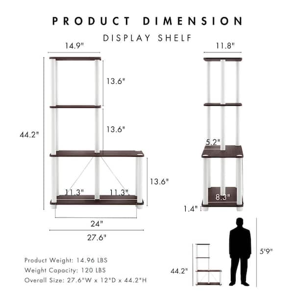 Quincy 44.2 in. Tall Espresso Engineered Wood 6-Shelf Modular Bookcase with Support Rods