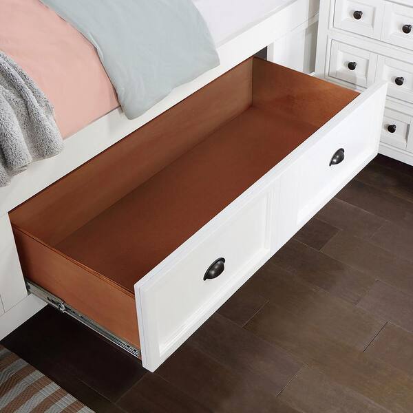 Ranchero White Wood Frame Queen Platform Bed with 4-Side Drawers