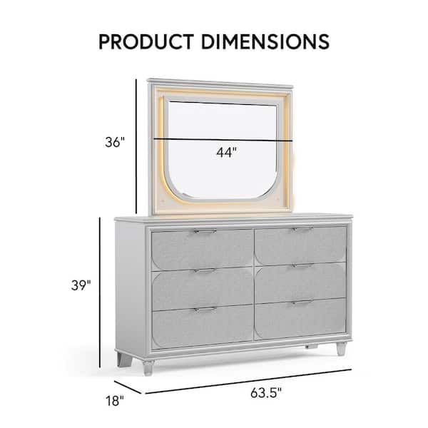 Renta Silver 6-Drawer 63.5 in. Dresser with Mirror and Embossed Panels