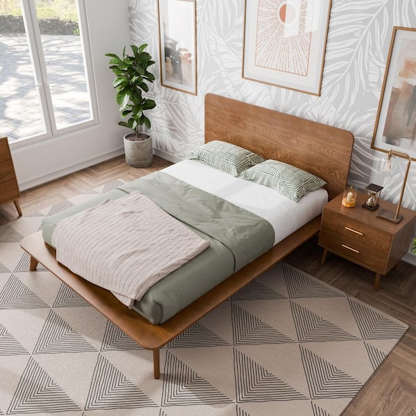 Riverstone 2-Piece Walnut Wood King Low Profile Platform Bedroom Set with Nightstand