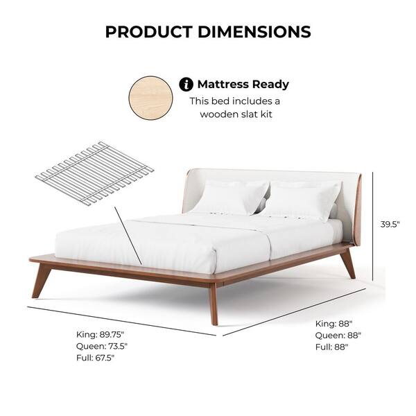 Riverstone 2-Piece Walnut and Beige Boucle Wingback King Low Profile Wood Platform Bedroom Set with Nightstand
