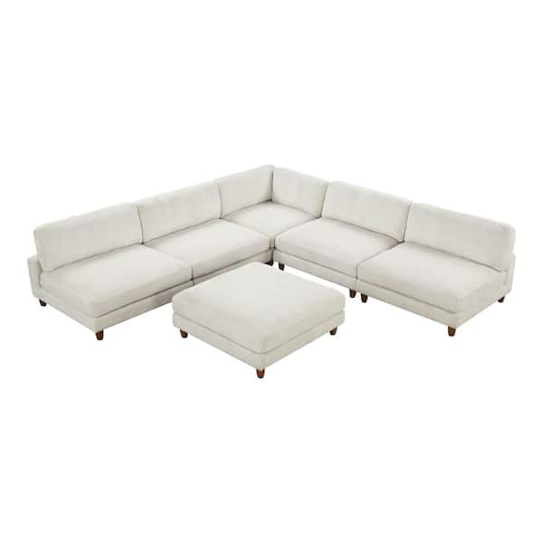 Rontop 133.5 in. 6-Piece Corduroy Fabric L-Shaped Sectional with Modular Design and Adjustable Back Support in Beige