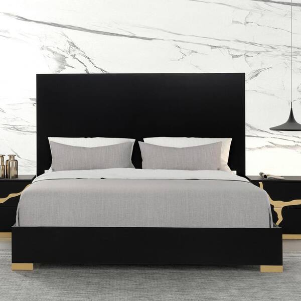 Rove Black Wood Frame King Platform Bed with Panel Headboard