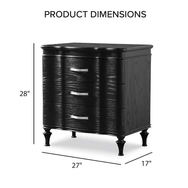 Seabliss Glam Black 3 Drawer 27 in. W Serpentine Nightstand