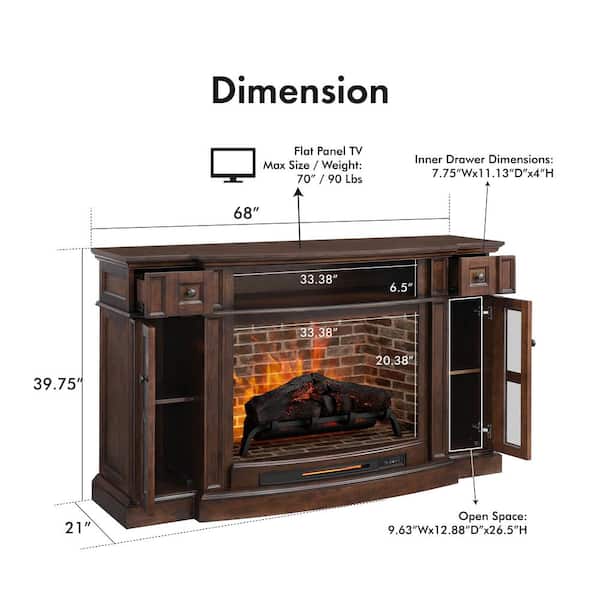 Sean 68 in. Freestanding Electric Fireplace Tv Stand in Brown