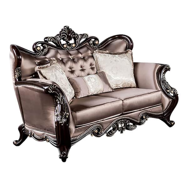 Sidney 71.5 in. Wingback Velvet 2-Seater Loveseat in Dark Cherry and Brown with Reversible Seat Cushions