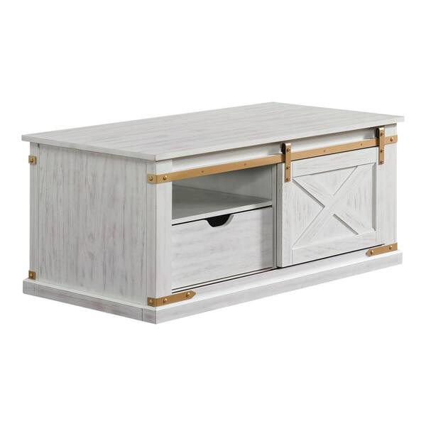 Sueli 3-Piece 48 in. Antique White and Gold Rectangle Wood Coffee Table Set with Barnyard Design
