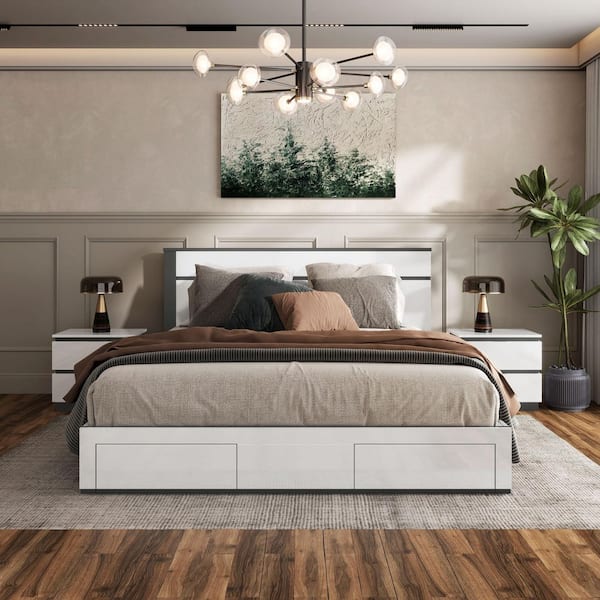 Summit Run 3-Piece White Wood Eastern King Bedroom Set with Underbed Storage