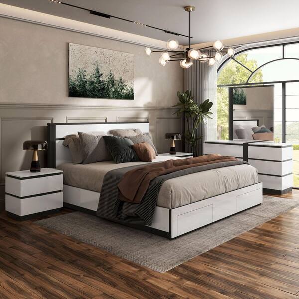 Summit Run 5-Piece White Wood Eastern King Bedroom Set with Underbed Storage