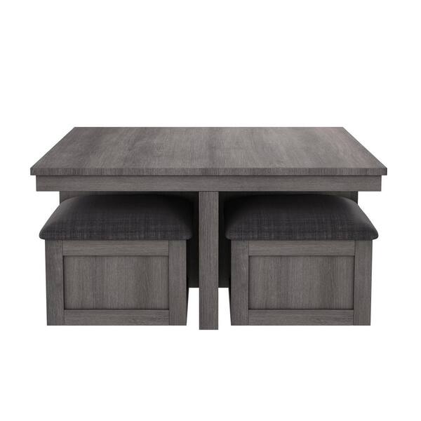 Tessi 38 in. Light Gray Square Wood Top Coffee Table with Ottomans
