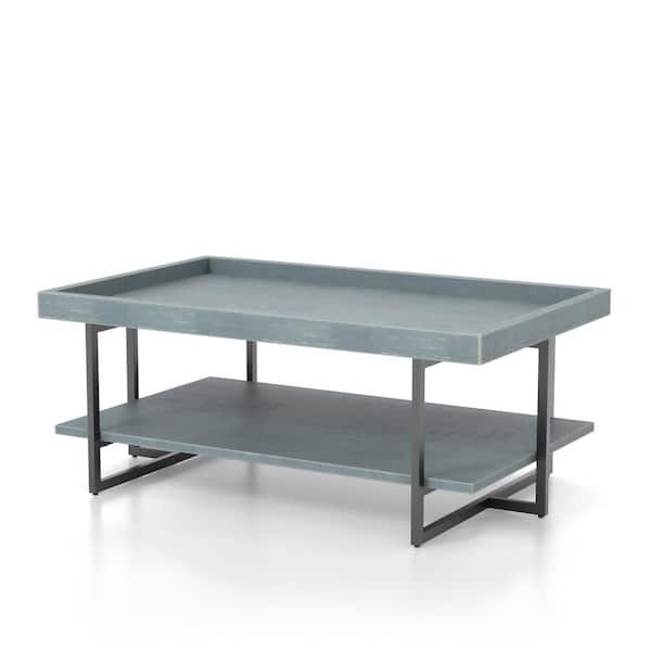 Triblisi 48 in. Blue/Black Large Rectangle Wood Coffee Table with Shelf
